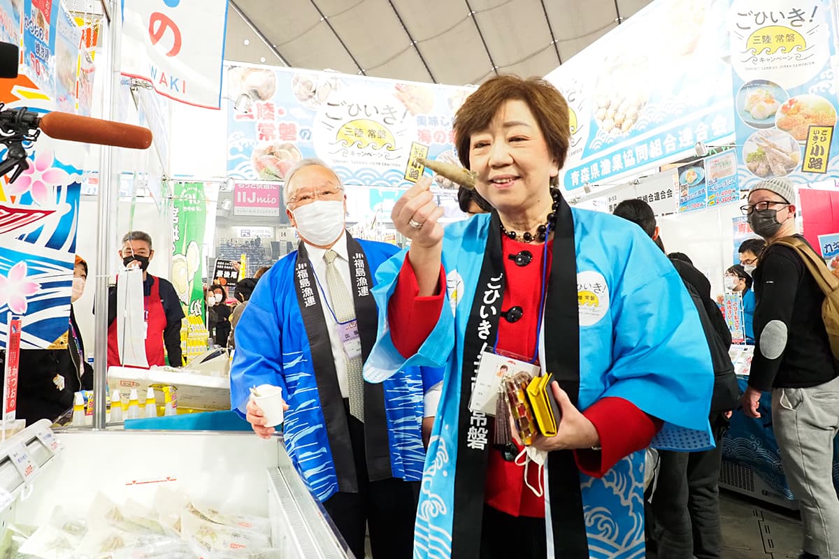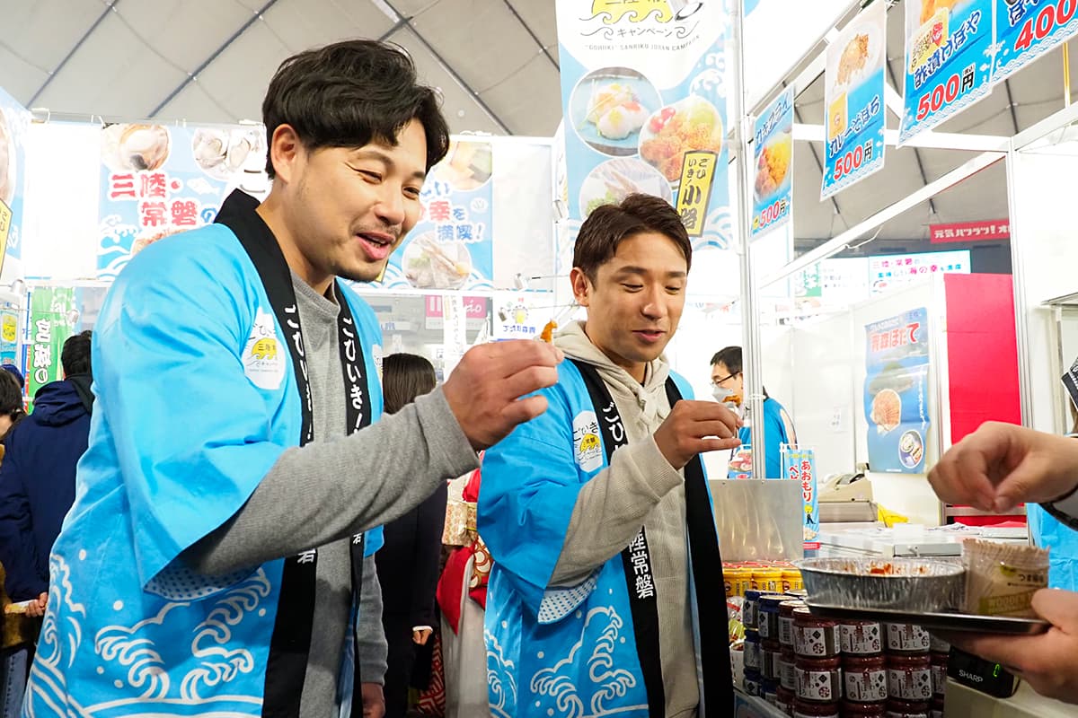 当日は西村康稔経済産業大臣、太田房江経済産業副大臣に加え、アンバサダー兼「ごひいき!様」第 1 号のお笑いコンビ“アルコ&ピース”の二人が三陸常磐の海の幸を紹介するほか、出展ブースで提供される地元グルメの試食などを行い、三陸常磐の魅力を伝えました。