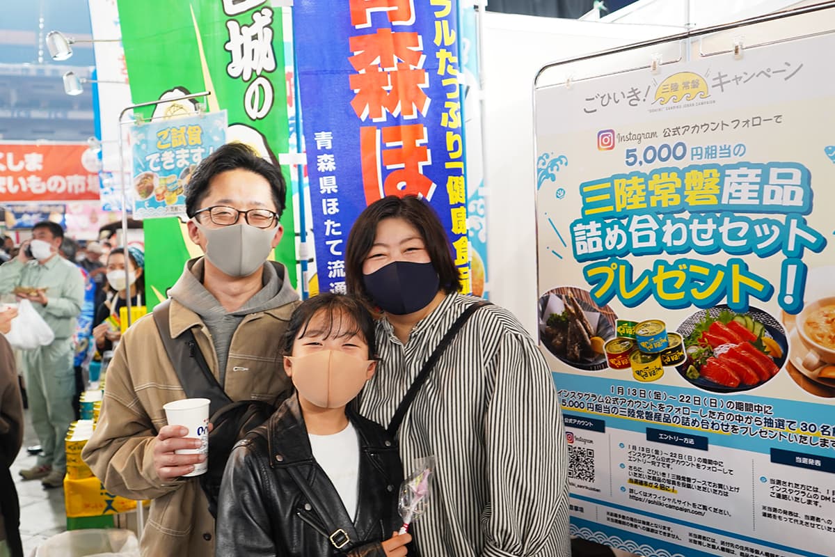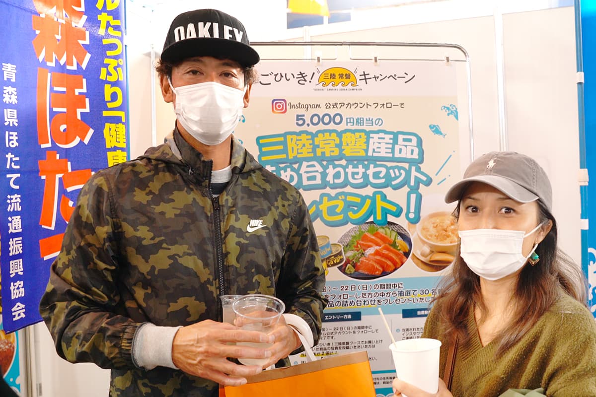青森県に旅行したこともあり「魚介類がとてもおいしくて、現地で食べまくりました。お得な価格で鮮度も抜群でした!」と語り、今日のイベントも満面の笑顔が表すように、きっと大満足!ですよね。