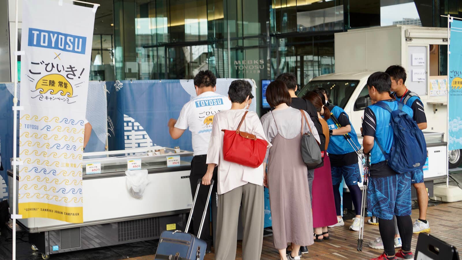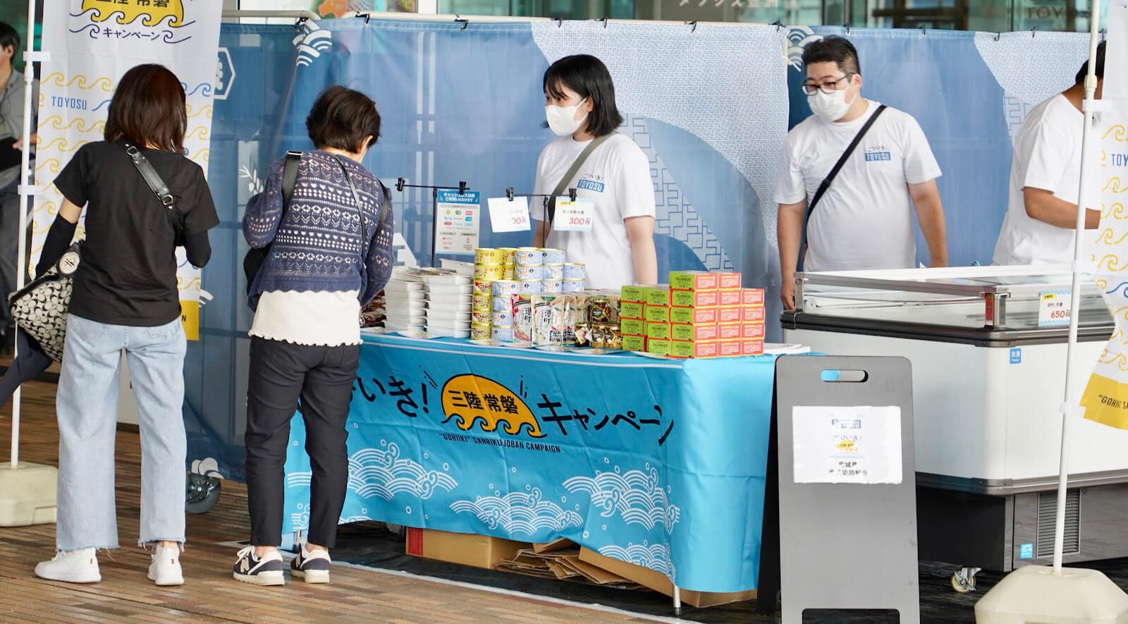 7月15日(土)から22日(土)まで豊洲で、情報発信ブースやガラポン抽選会、三陸常磐地域の漁連・漁協の出店などで三陸常磐の海の幸を紹介するイベント、「ごひいき!三陸常磐キャンペーン」in 豊洲が開催されました。