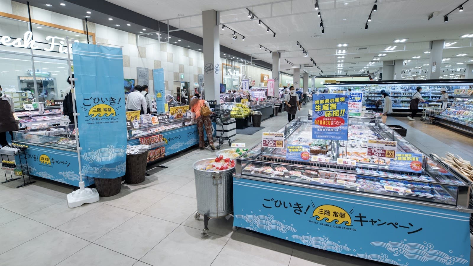 8月25日(金)から、ごひいき!三陸常磐キャンペーンと福島県を中心に展開する4つのスーパーマーケット「ヨークベニマル」「マルト」「リオン・ドール」「いちい」が、合同で三陸常磐海産物の販促キャンペーンを行っています。その名も、ごひいき!三陸常磐キャンペーン「地元でも、もっとごひいきに!福島コラボ」。キャンペーン期間中は、4つのスーパーそれぞれが三陸常磐の海産物を広く販売していきます。