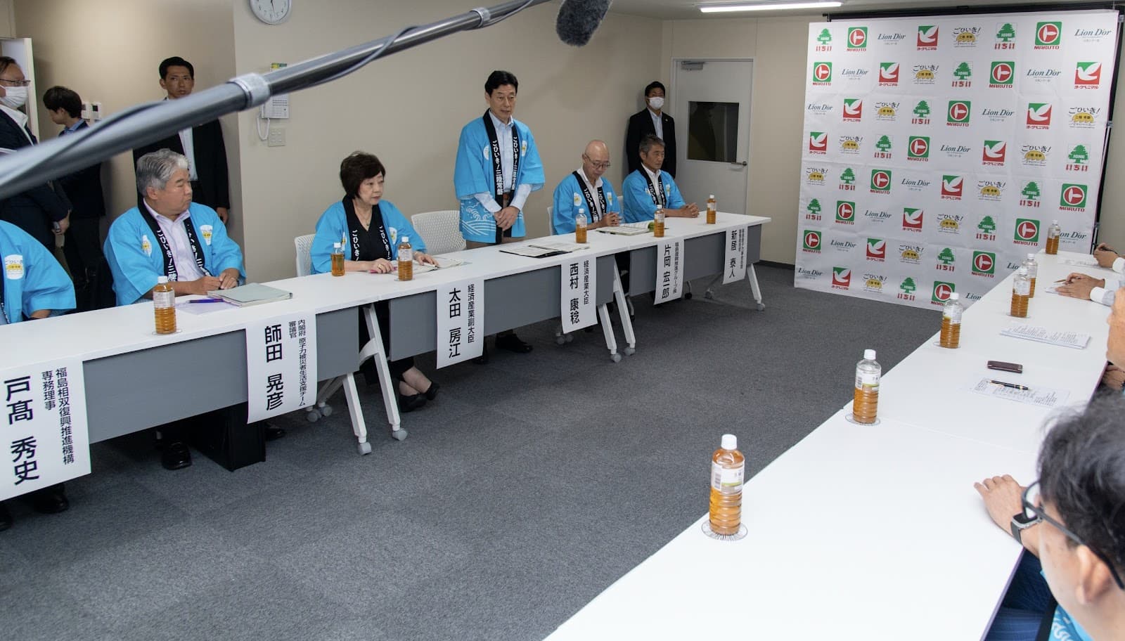 今回のコラボレーションを受けて、8月28日(月)に福島市のヨークベニマル南福島店に、西村康稔経済産業大臣と太田房江経済産業副大臣が訪れ、三陸常磐の海の幸の魅力を伝えました。西村大臣・太田副大臣が4つのスーパーの代表者らとともに登壇し、本キャンペーンの紹介や、福島県産の「ひらめ」「ほっき貝」を試食。その後、福島県内の流通・小売事業者との意見交換を実施しました。