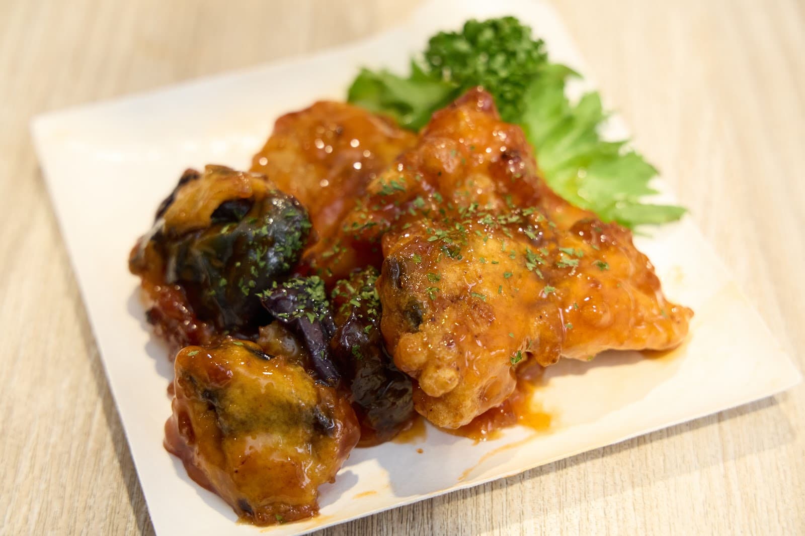 この日のイベントには、福島県立小名浜海星高校水産クラブ調理チームも登場。地元の海産物を使用したマルトとの共同開発商品、「サバピカ(サバのピカタ)」、「いわし団子」、「目光の南蛮漬け」の3品を紹介しました。サバピカを紹介した海洋工学科3年生の鈴木さんは、「骨を取り除いて食べやすくカットした常磐もののサバを、茄子と一緒にほんのり辛いチリソースで味付けしました。サバの匂いを消すために粉チーズを使い、魚が苦手な人でも食べやすい味なので、ぜひ多くの人に食べていただきたい一品です!」とアピール。試食した新居総括官も「ぜひビールと一緒に食べたい味ですね。ファンになりました!おいしい!」と、その味に太鼓判。