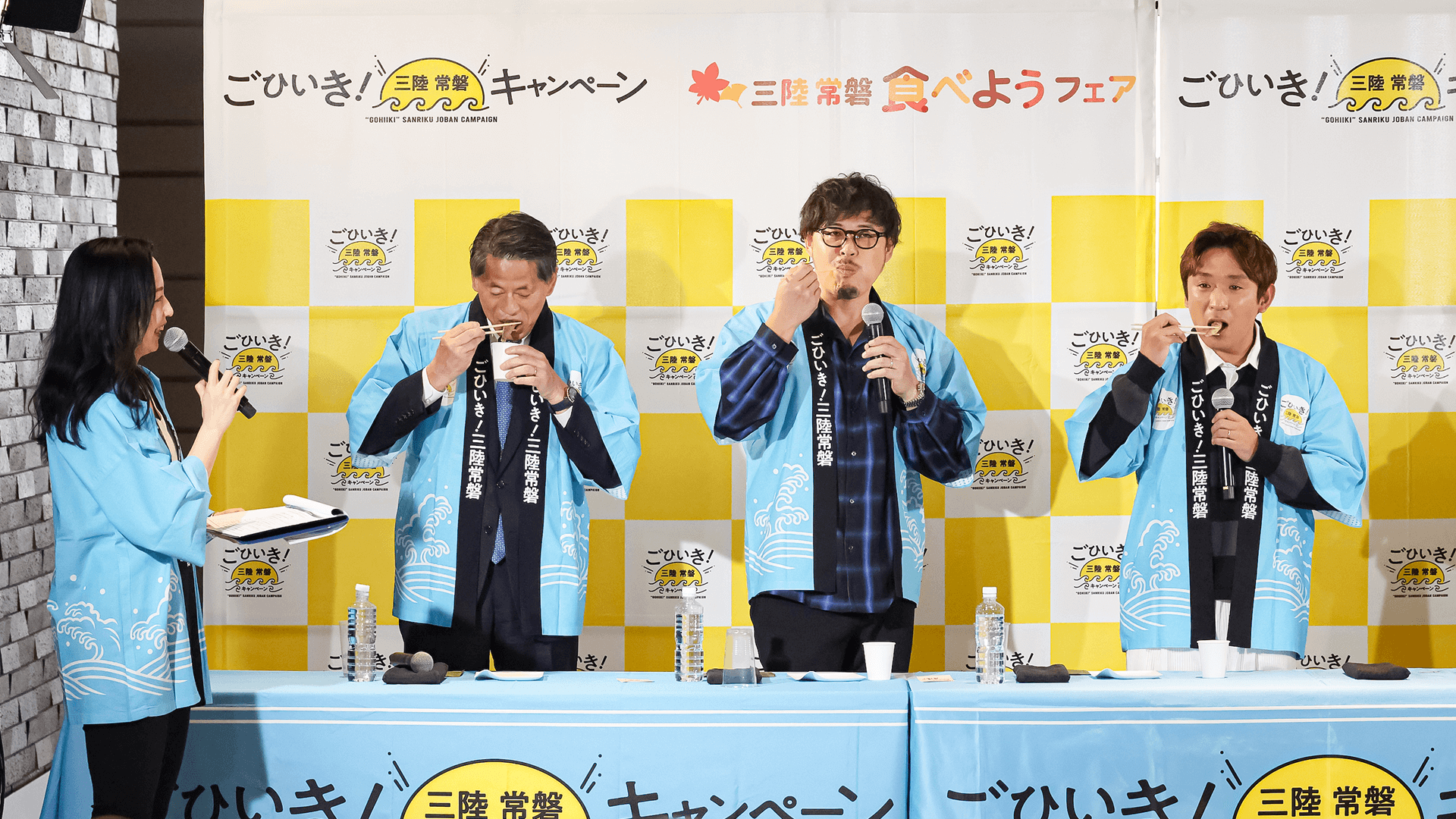 そして最後に山田副大臣が改めてキャンペーンの意義を強調しました。「三陸常磐ものは本当に素晴らしい素材が揃っています。一方で、『ご家庭での調理法がわからない』というお声があるのも事実です。だからこそ、アルコ&ピースのお二人や各県のみなさまから具体的な食べ方の提案をいただくことで、『購入して家でやってみよう』と思うきっかけになると感じました。このあともぜひ、ブースを楽しんでいってください」と、消費を促すメッセージで締めくくりました。