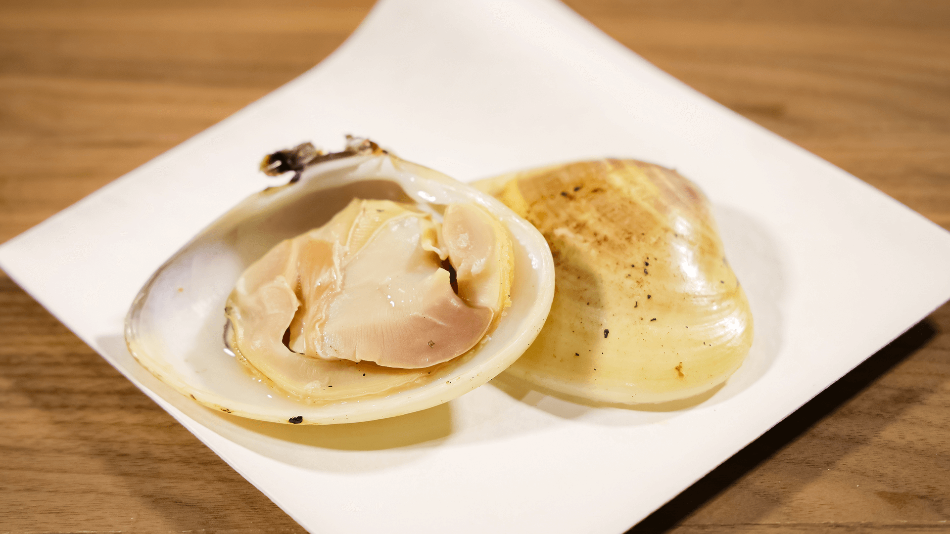 次々と繰り出される海の幸。さらなる食欲スイッチを入れる香りをまとう茨城県の「ハマグリの網焼き」が登場です。「わたしの拳と戦えるぐらいの大きさです」と平子さんが貝の大きさに驚き、「網焼きだから香ばしさもあって。うまい!」と酒井さんが続けます。山田副大臣は「網焼きのだしがたっぷりで、垂れてしまうほどあふれています。味も濃厚」と、大きな貝の身を会場にも見せながらアピールしました。